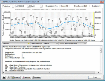 LSA has the ability to make detailed next draw predictions, produce comprehensive and easy to understand reports that cover every ball combination possible, most and least common, next due numbers, individual ball occurrence reports and much more. Lottery statistic anaylser features the best wheels available allowing you to win over 20% more than using standard wheels. LSA features over 1500 wheels to choose from. Lottery statistic anaylsers wheels beat almost every world breaking reduced wheels odds.
