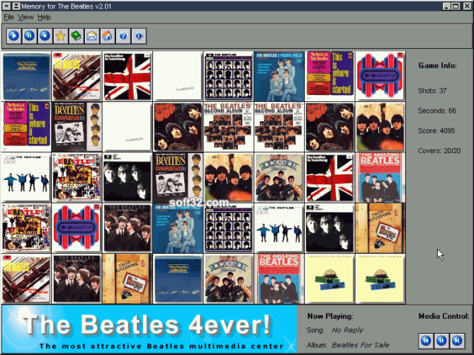 Memory for The Beatles is a free game by Processtext Group and works on Windows 10, Windows 8.1, Windows 8, Windows 7, Windows XP, Windows 2000, Windows 2003, Windows 2008, Windows 98, Windows ME, Windows Vista, Windows 2012.