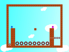 Square Boy is a 2D platformer in which the only goal is to jump over gaps, avoid traps and somehow make it to the end of each stage as quickly as possible. You play the role of a blue character with no background story, who must reunite with his pink partner and overcome every obstacle along the way. Thankfully, you do not need to worry about plot development or anything of the sort.