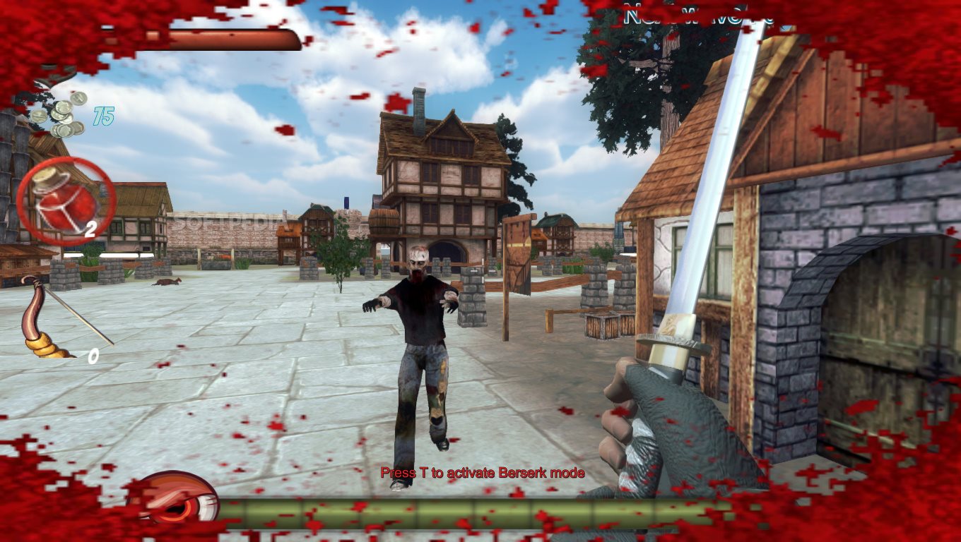 Zombies Vs Berserk is a first-person shooter in which you are challenged to defend a small town from hordes of undead monsters, as well as gather as much money as you can in order to upgrade your weapons. There are no original elements at work here, so don’t expect engaging new ideas, but you can still have moderate amounts of fun with the game.