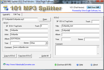 You can download 101 MP3 Splitter which is 937.53 KB in size and belongs to the software category Audio. 101 MP3 Splitter was released on 2010-01-15 and last updated on our database on 2017-02-26 and is currently at version 3.1.