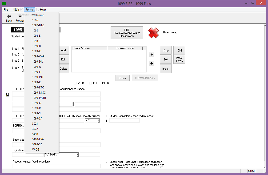 1099 FIRE (formerly Form 1099-INT Interest Income) is a demo software by Ruth Technology Corporation and works on Windows 10, Windows 8.1, Windows 8, Windows 7, Windows XP, Windows 2000, Windows 2003, Windows 2008, Windows Vista, Windows 2012.