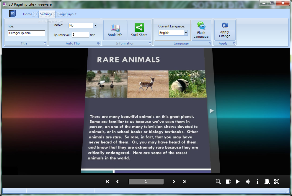 3D PageFlip Lite is a handy application designed to convert text documents to real 3D flash page flip books.