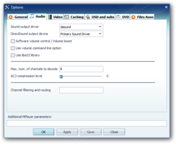 It is possible to load subtitles, auto detect or input the aspect ratio, enable deinterlance, change the UI’s language, skin and files association. From the settings panel, you can tweak the brightness, contrast, saturation, hue and gamma levels, as well as control the subtitle’s size.