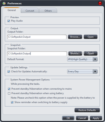 Offers you a built-in media player to play the video and audio files and take video snapshot anytime during playing.