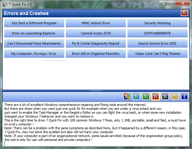 7 Quick Fix is a free software by LeeLu Soft and works on Windows 10, Windows 8.1, Windows 8, Windows 7, Windows 2012.