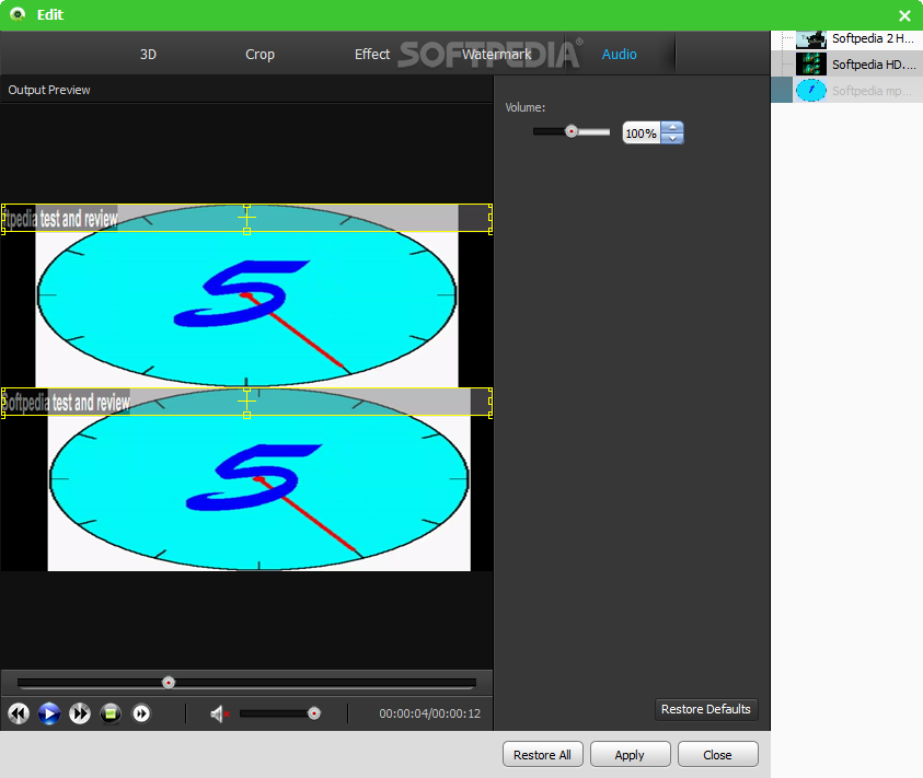 The HD Video Converter is featured with editing tools. You are able to modify the video effect, adjust the brightness, saturation, contrast, hue and volume. Clip the video with trimming feature to get some video part or remove unwanted one. You can also crop the video or change aspect ratio of the video to generate suitable screen size for players or remove marks or black bars. Add watermark with text and pictures to make marks on the video. Check all the clips and click "Merge" to convert several clips into one file. The Deinterlacing function in the Effect interface can eliminate jaggedness from interlacing videos.