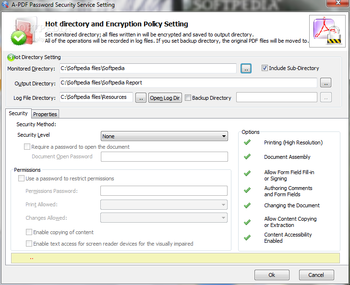 With A-PDF Password Security, you can set a PDF file to require a password to open, and/or restrict access. For example, to allow or not allow printing, copying content, changing the file, etc.
