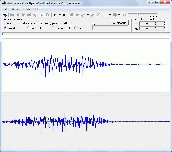 If you open a non compatible wave file, then AAAwave will display the properties of that file and not let you edit it. The program comes with many useful tools, including the option to adjust the sample size and set the maximum volume. You can adjust the fizz fix, crackle and pop fixes if you want.