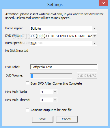 Author and burn video files to DVD-5 DVD movie and DVD-9 DVD movie.