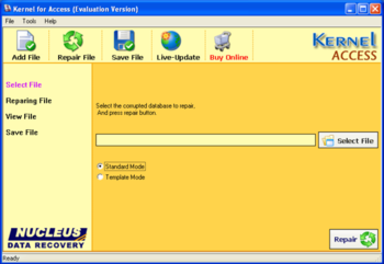 Kernel Access Database recovery software is a competent access repair tool which allows you to convert the inaccessible access files to usable MDB database files. The software provides you with two recovery options: Standard Mode and Template Mode. Standard mode is useful in case of normal file corruption, whereas the Template mode is recommended when there is internal database structure loss. MS Access repair tool uses Live Preview technology while performing a recursive scan of the corrupt database and easily extracts the table structure, key data fields, memo data, OLE data, table relationships, original date format. Effectively recovers password protected Access databases (even if the password is not known to the user). It is totally user friendly requiring no technical skills at all. Free Demo version shows the recovered data but to save the same you need to purchase the Full version. It supports access 2003, access 2000, access 97, access 95 databases.