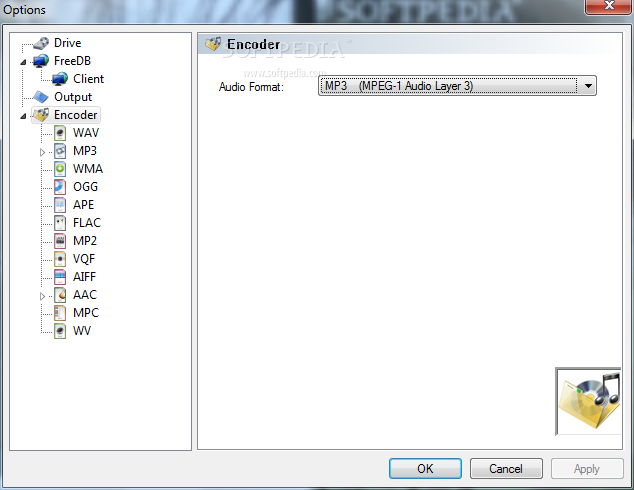Supports three external AAC encoder: FAAC, Nero AAC and CT AAC+. Plain audio CD Player.