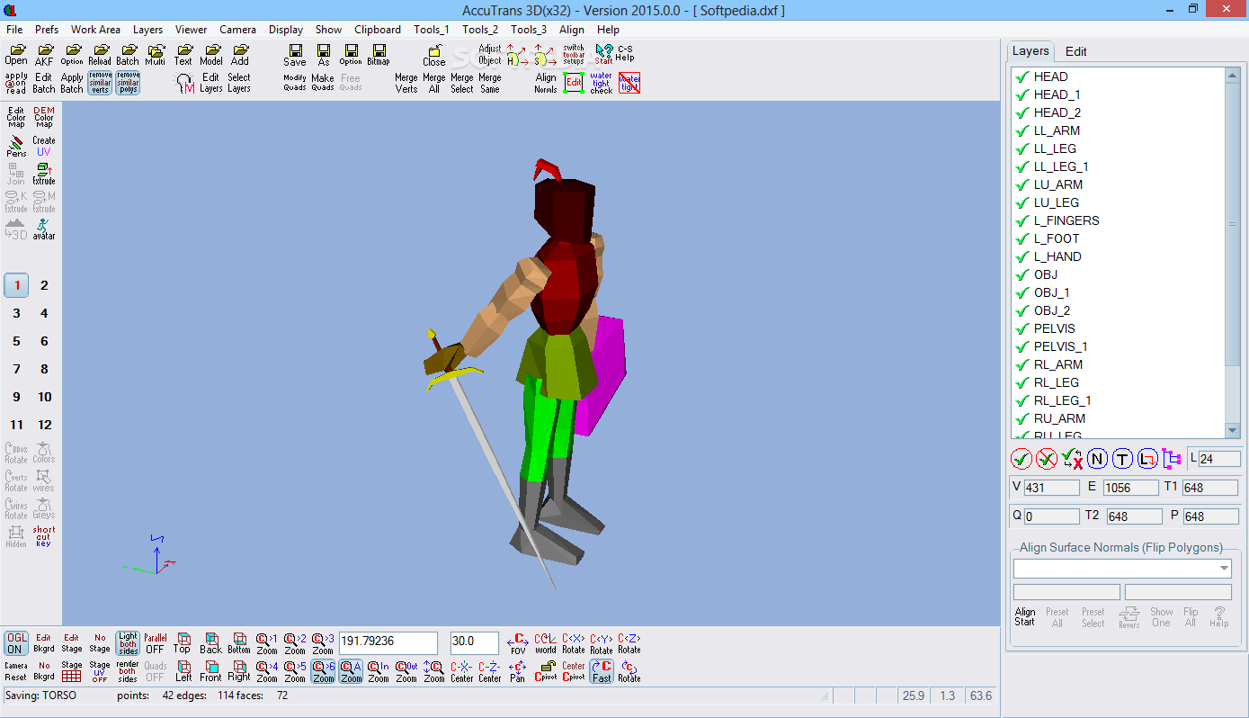 Align surface normals for 3D Studio, LightWave, Lightscape, RenderWare and VRML