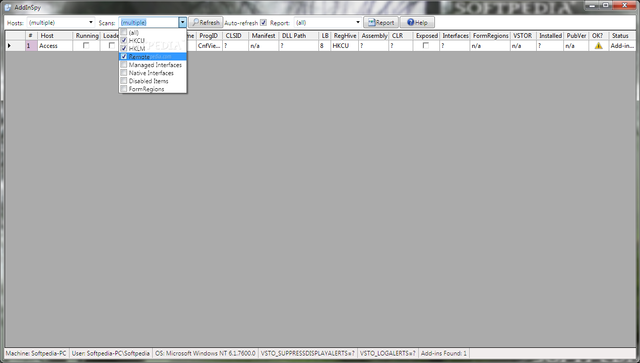 The utilities arent wrapped in a setup package, so you can copy the files anywhere on the PC and double-click an .exe to run. The interface of AddInSpy is made of a classical window with a simple structure, enabling you to filter hosts by type, such as Microsoft Access, Excel, FrontPage, InfoPath, Outlook, PowerPoint, Project, Publisher, SharePoint Designer, Visio, or Word.