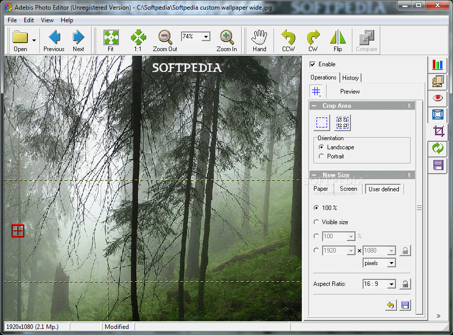 The intuitive interface of Adebis Photo Editor enables users to preview applied changes in real time, which gives them full control over the editing process, and to access all of the application's features one after another, which greatly simplifies the process for less experienced photographers.