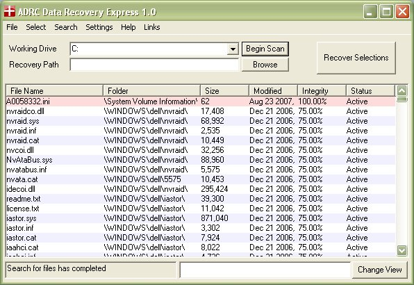 ADRC Data Recovery Express is able to recover data from all known cases of logical damage such as deletion, formatted media, partition corruption, virus attack and other forms of logical damage.