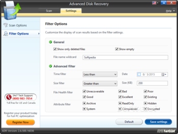 You can download Advanced Disk Recovery which is 5.45 MB in size and belongs to the software category Backup and Recovery. Advanced Disk Recovery was released on 2016-07-27 and last updated on our database on 2017-04-14 and is currently at version 2.6.