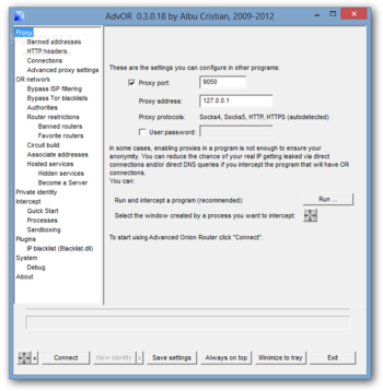 Advanced Onion Router is a free software by Albu Cristian and works on Windows 10, Windows 8.1, Windows 8, Windows 7, Windows XP, Windows 2000, Windows 2003, Windows 2008, Windows Vista, Windows 2012.