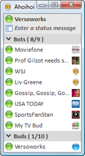 The Ahoihoi application was designed by Versoworks and it was built on top of the Open AIM platform created by AOL. It allows you to communicate over the U.S. based version of the AOL Instant Messenger (AIM) network exclusively. Ahoihoi can be used as an alternative to the official AIM software for the Windows PC platform. You can read more about custom clients by visiting the AIM Enabled page.