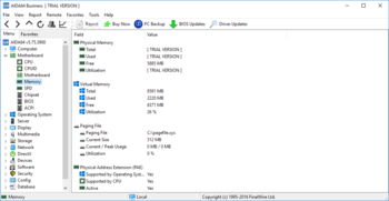 AIDA64 Business is a demo software by FinalWire Ltd. and works on Windows 10, Windows 8.1, Windows 8, Windows 7, Windows 2012.