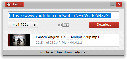 Airy is a straight-forward and intuitive program functioning as a YouTube downloader, in the attempt to offer you access to all your favorite videos, so you can watch them on your computer regardless of your current Internet access.