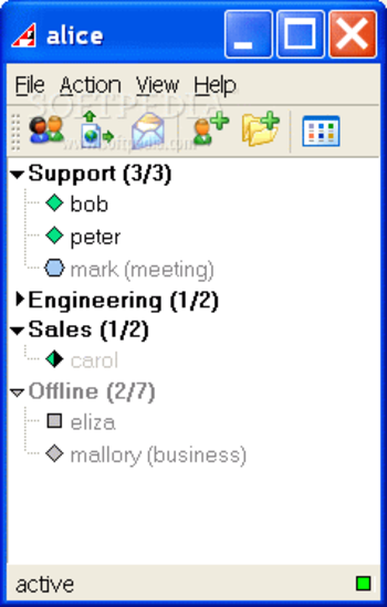 The role based access right system allows the administrator to control whether users are allowed to send files, initiate chats and conferences, and to "lock down" users contact lists.System requirementsPentium 266 or better
