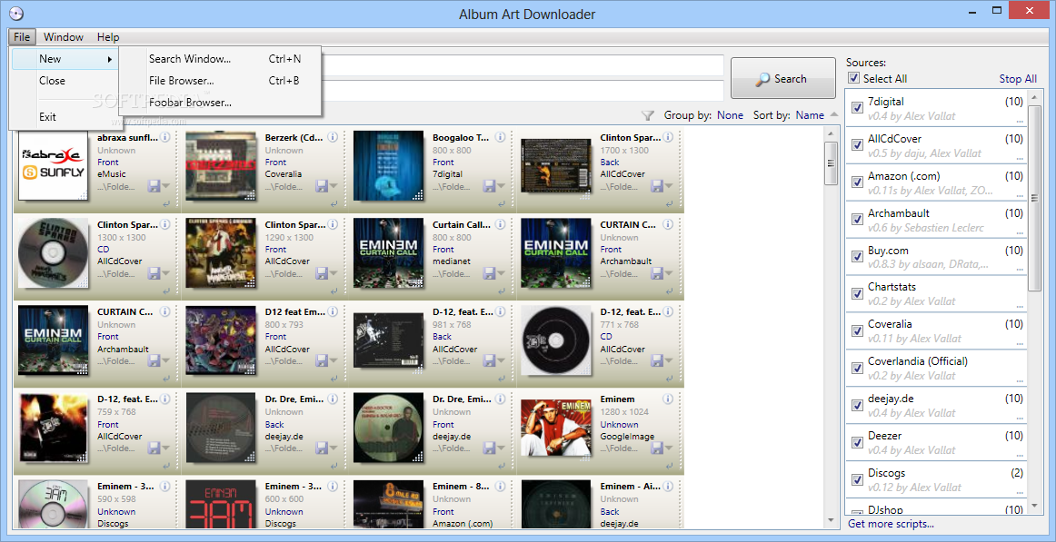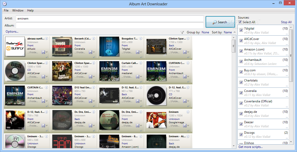 You can look for either artists or albums, with Album Art Downloader coming by default with around 25 sources.
