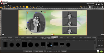 It features various predefined templates and album styles, clipart and beautiful backgrounds. The editor is packed with different elements, helping you to combine text, shapes, frames, masks to get the desired result. The program is wrapped in a user-friendly and modern interface that lets you create either a customized collection or an automatic one where all you have to do is choose the desired option and the app does the rest.