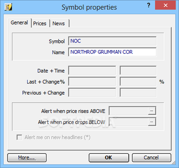 As long as you have a stable connection to the Internet, AlertTAPE can retrieve live news regarding the companies you follow. The tool does not allow you to make transactions, but it does indicate the most recent sales/acquisitions recorded by official sources. The fields are marked green for increased prices and red for smaller rates.