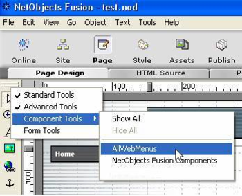 AllWebMenus NetObjects fusion component allows for the perfect integration for creating web menus of infinite levels in fusion. The component allows for the creation and placement of any cross-browser DHTML / Javascript menu created with AllWebMenus in the easiest and visual way so that the menus can be created in minutes with no programming required. The popup menus are fully functional in DHTML enabled browsers and are highly optimized for speed and design flexibility.