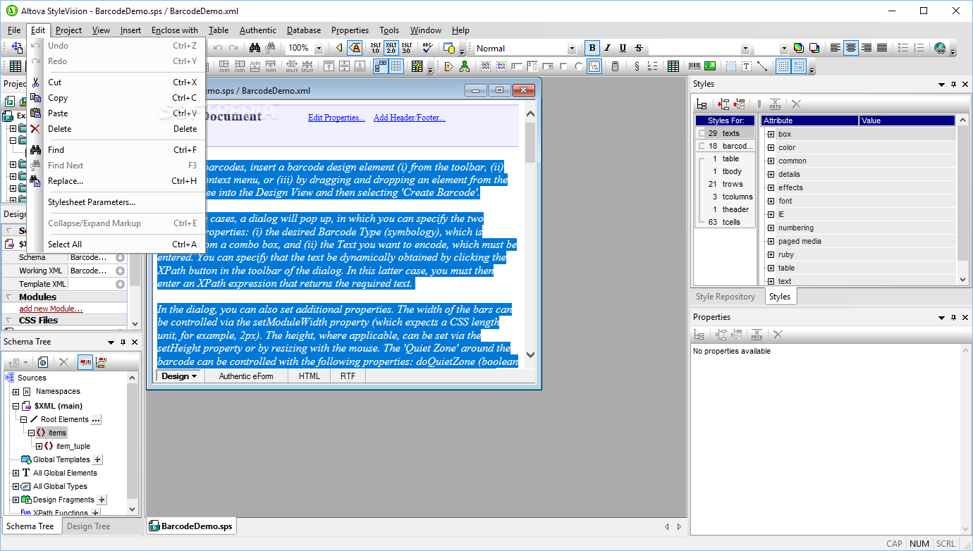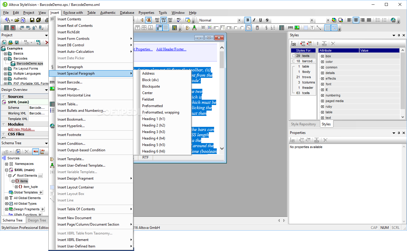 StyleVision aims to help you generate stylesheets based on XML schemas, databases or XSLT files, providing a comprehensive array of options and support for various standards, such as XSLT, JavaScript or CSS. It comprises a script editor and development components that allow you to work easier than ever.