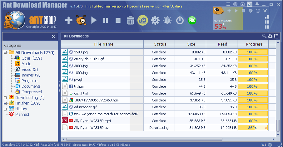 You can download Ant Download Manager which is 21.9 MB in size and belongs to the software category Download Managers. Ant Download Manager was released on 2017-04-24 and last updated on our database on 2017-09-05 and is currently at version 1.6.