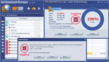 Ant Download Manager is a quick downloader of internet content with video download supports. It provide full integration to browsers Internet Explorer 8+, Mozilla Firefox 32+, Google Chrome 31+ and their clones (Pale Moon,Opera,Slimjet,ComodoDragon,Vivaldi,..), supports HTTP(S), FTP(S) network and F4M, M3U8, MPEG-DASH, RTMP(x) media stream protocols, downloads by categories and speed acceleration, multilanguage support, animated preview of downloaded item of list, portability, Drag&Drop. Supports various media services (Youtube, Vimeo, DailyMotion, Rutube etc.). There are conversion and merger for Youtube DASH files. For fans of video there are 2 ways to download movies: the dialog box of the internal interface of the program or the button-panel who integrated into browsers. It appears above the video frame at the starting time of the video stream.