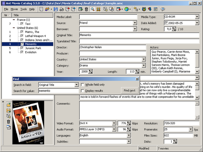 You can download Ant Movie Catalog which is 4.5 MB in size and belongs to the software category Miscellaneous. Ant Movie Catalog was released on 2012-07-04 and last updated on our database on 2017-02-18 and is currently at version 4.1.