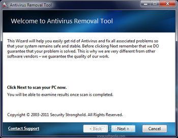 Antivirus Removal Tool is a demo software by Security Stronghold and works on Windows 10, Windows 8.1, Windows 8, Windows 7, Windows XP, Windows 2000, Windows 2003, Windows 2008, Windows Vista, Windows 2012.