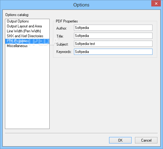 PDF Properties support. Allows you to set the author, title, subject, keywords for the PDF file.