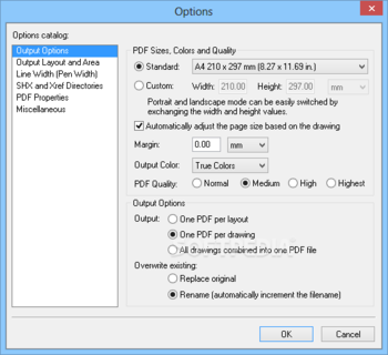 Versatile and customizable output. Enables you to choose the Size, Quality, Output Color, and Background Color of the PDF file.