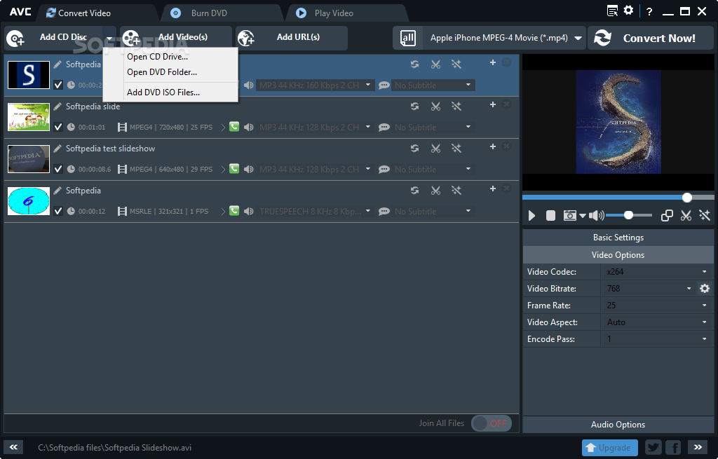 Batch convert any video formats including avi, wmv, asf, mpg, mp4, etc.
