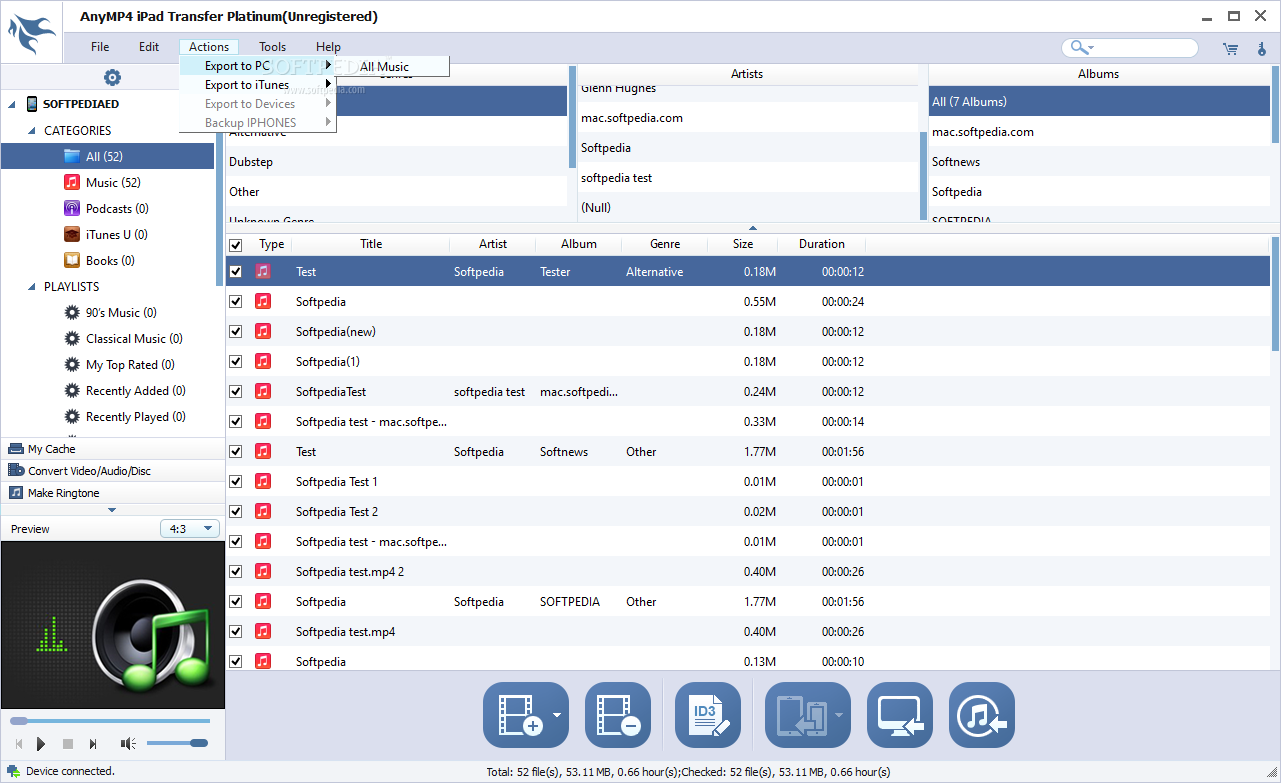 AnyMP4 iPad Transfer Platinum also works on the system of creating and syncing playlists and albums, a little more confusing that simply dragging, dropping, cutting and pasting files directly to your device, the advantage being an organized environment.