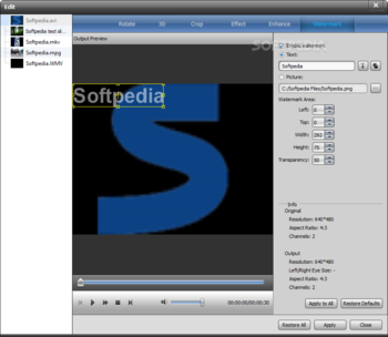 Customize video effects with clip, crop, watermark, 3D and more video edit functions