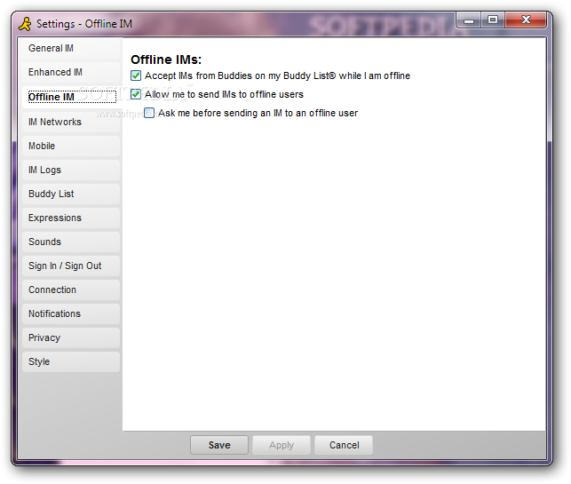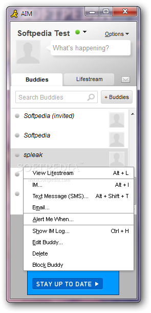 You can download AOL Instant Messenger (AIM) which is 6.65 MB in size and belongs to the software category Chat. AOL Instant Messenger (AIM) was released on 2014-07-05 and last updated on our database on 2017-04-01 and is currently at version 7.5.