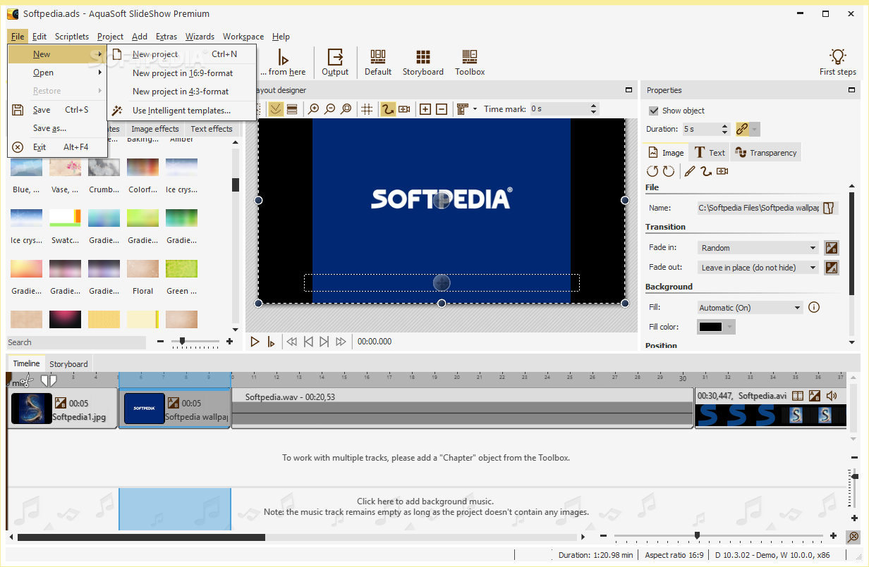 You can download AquaSoft SlideShow Premium which is 189.94 MB in size and belongs to the software category Graphic. AquaSoft SlideShow Premium was released on 2017-04-05 and last updated on our database on 2017-07-22 and is currently at version 10.5.