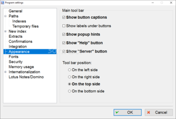 Indexing and adminstration takes place in the main (not web-based) environment (a lot more flexible and usable than web-environments of other search tools).