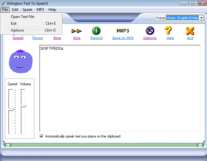 The application is also able to automatically monitor your clipboard, paste the captured text data in the GUI, and read it aloud. Basic audio playback capabilities are implemented for helping you control the speech. You are allowed to start, stop, or pause the current text, and skip or rewind data.