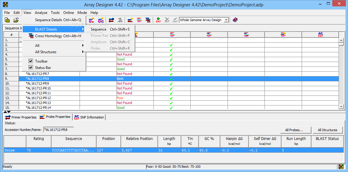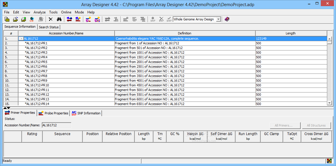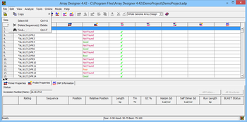 Choices in Probe Design: Array Designer can design single or multiple probes per sequence for your microarray projects. Allows specifying the minimum distance between two probes to avoid overlapping.