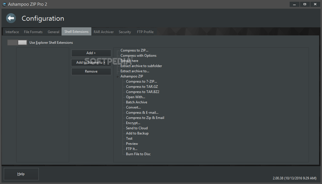 You can download Ashampoo ZIP Pro which is 43 bytes in size and belongs to the software category Compression tools. Ashampoo ZIP Pro was released on 2016-10-23 and last updated on our database on 2017-04-16 and is currently at version 2.