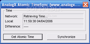 You can download Atomic TimeSync which is 354.54 KB in size and belongs to the software category Clocks and Time Management. Atomic TimeSync was released on 2006-04-04 and last updated on our database on 2017-02-17 and is currently at version 1.03.