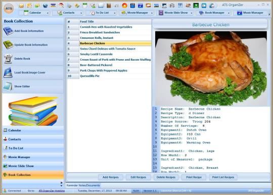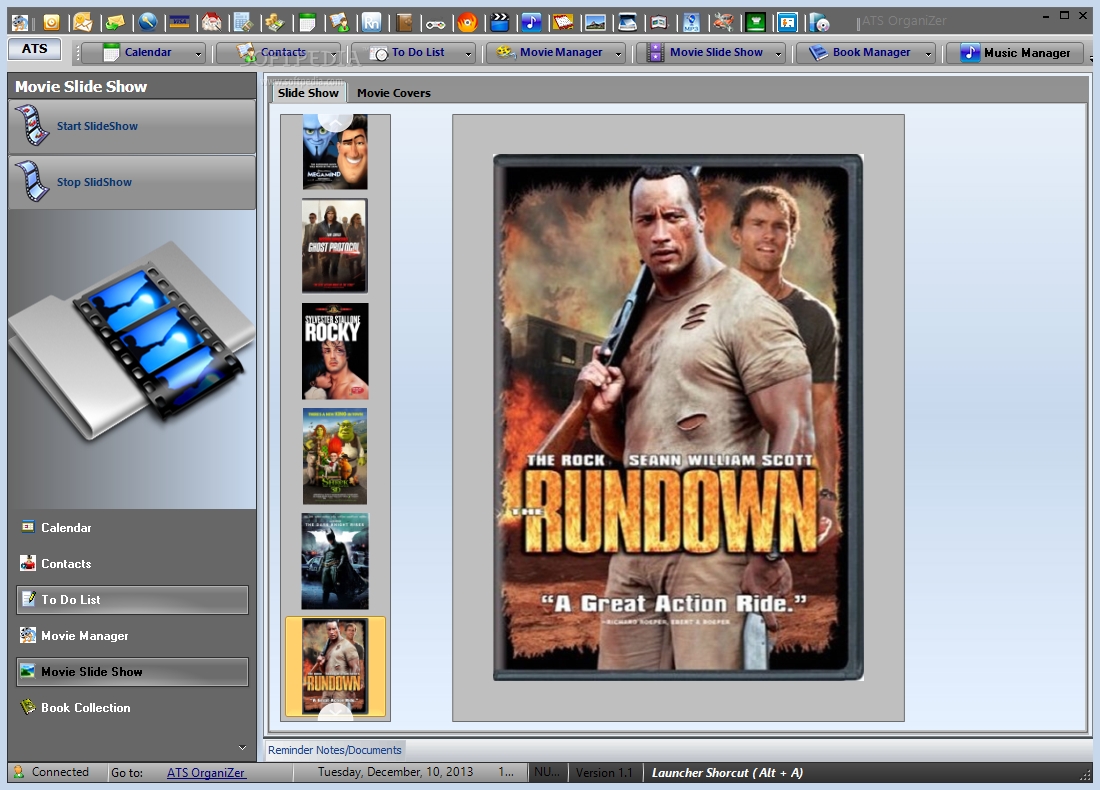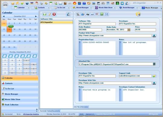Calendar with Day, Week, Month and Year views Contact Manager To Do List Appointments DVD Movie Manager Movie Slideshow of all your movies you have added Music Manager MP3 Tagger Book Collection Password Manager Credit Card Manager Home Inventory Burn DVD/CD that you added Movie Loan Tracker