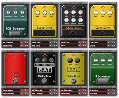You can download Audiffex Multi Drive Pedal which is 6.28 MB in size and belongs to the software category Audio. Audiffex Multi Drive Pedal was released on 2013-02-20 and last updated on our database on 2017-03-08 and is currently at version 1.