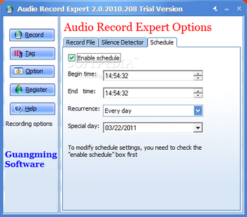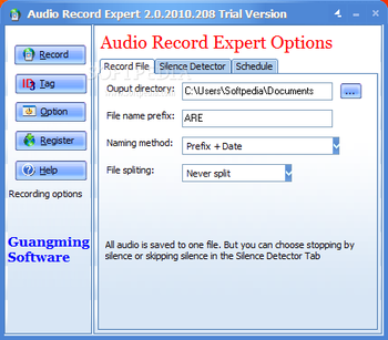 Audio Record Expert is a demo software by Guangming Software and works on Windows 10, Windows 8.1, Windows 8, Windows 7, Windows XP, Windows 2000, Windows 2003, Windows 2008, Windows ME, Windows Vista, Windows 2012.